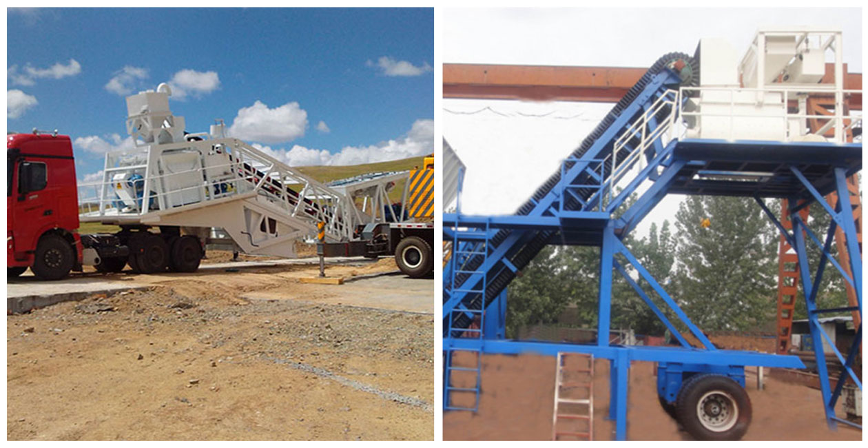 Mobile concrete batching plant for sale is disassembly fast, easy to move, except for access equipment such as screw conveyor, cement silo, the concrete mixing station without removing all the wiring, just a 30-ton crane with a day shift. When installed, such as a solid ground level can be without foundation, you can make the production schedule requirements of the unit in the same day.