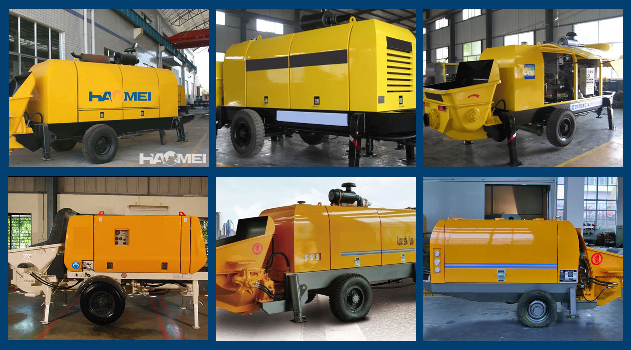 1. Trailer concrete pump is a concrete machine which is rack mounted on the bottom line and can be dragged through a pipe concrete pumping.
